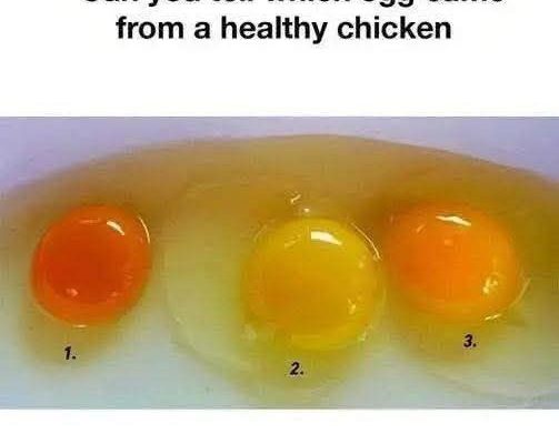 May be an image of egg yolk and text that says "Can you tell which egg came from a healthy chicken Details in the first comment"